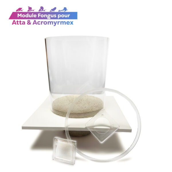 - 1️⃣ Afin d’assurer la réussite de votre élevage de vos Atta ou Acromyrmex, il est fortement recommandé de placer le module à l’intérieur d’une « cloche » fermée, dans un aquarium rempli de 3 à 4cm d’eau, ou un bac étanche lui-même posé à l’intérieur d’une caisse plastique ou vitrine fermée. L’environnement confiné permet de maintenir un taux d’humidité général élevé, et crée un microclimat adapté à vos Atta et Acromyrmex.